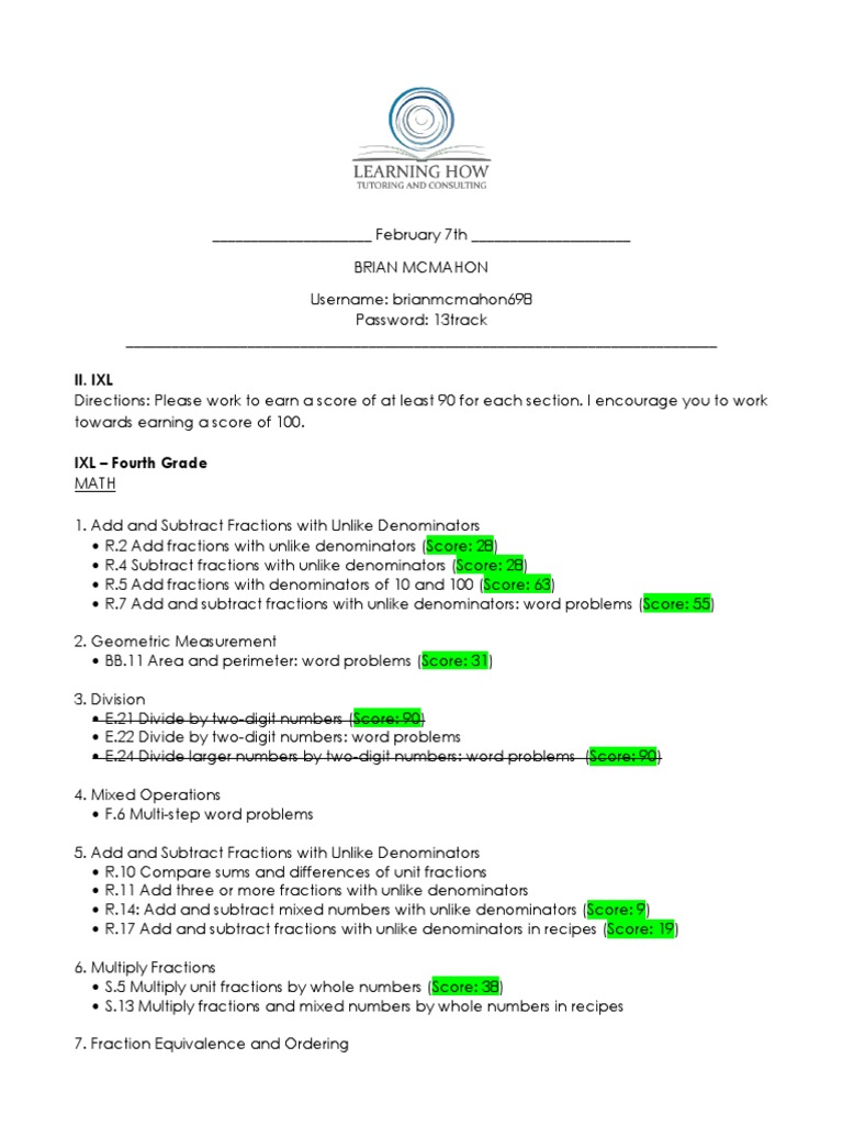 Math Practice Work Brian Mcmahon Feb Fraction Mathematics